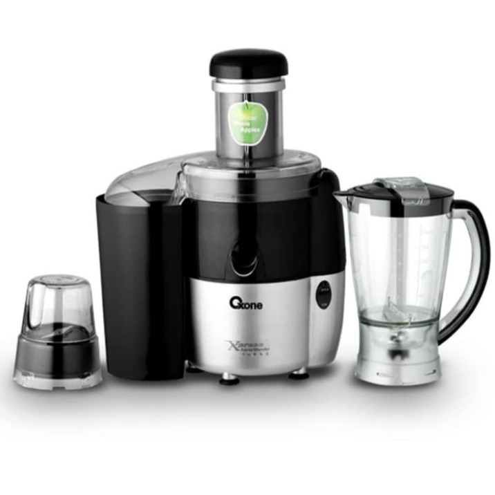 Juicer Blender Berfungsi sebagai Juicer, Penghalus bumbu basah dan kering, dan blender dalam 1 alat. Memiliki lubang untuk memasukan buah yang muat dengan diameter 1 apel utuh. Pisau dengan bahan stainless steel yang kuat mampu menghancurkan dan menghaluskan buah dengan cepat.